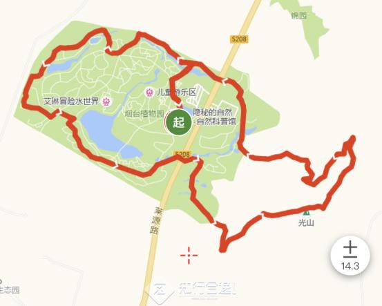少年组(8公里):烟台植物园自然科普馆广场(起点)→右转植物园外圈路→南侧地下桥→光山→东侧防火站→木栈道→北侧地下桥→烟台植物园自然科普馆广场(终点)