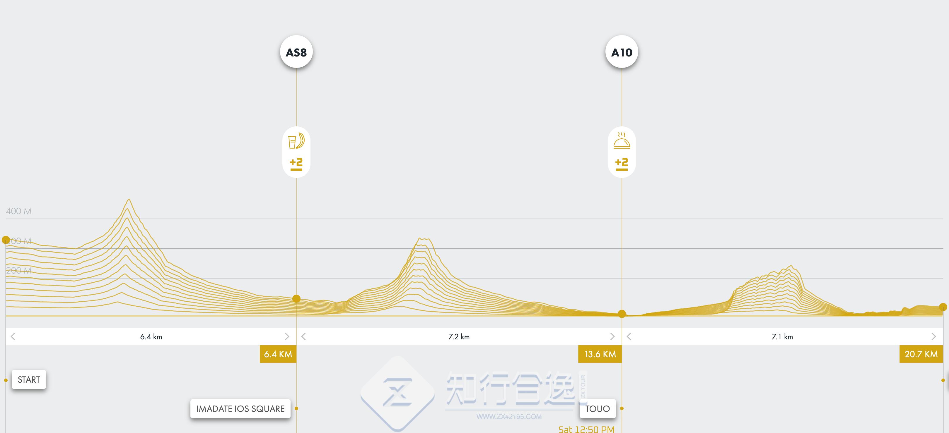 20公里:20.7公里,累计爬升 649米,6小时关门,早上 8点起跑,完赛可以获得1个宝石。出生于12/31/09之前可以报名。