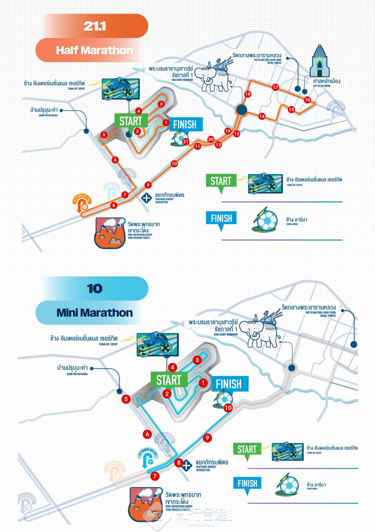 武里南马拉松起点在泰国武里南国际赛车场,你将在方程式赛车F1的赛道上奔跑。马拉松全程封路。
