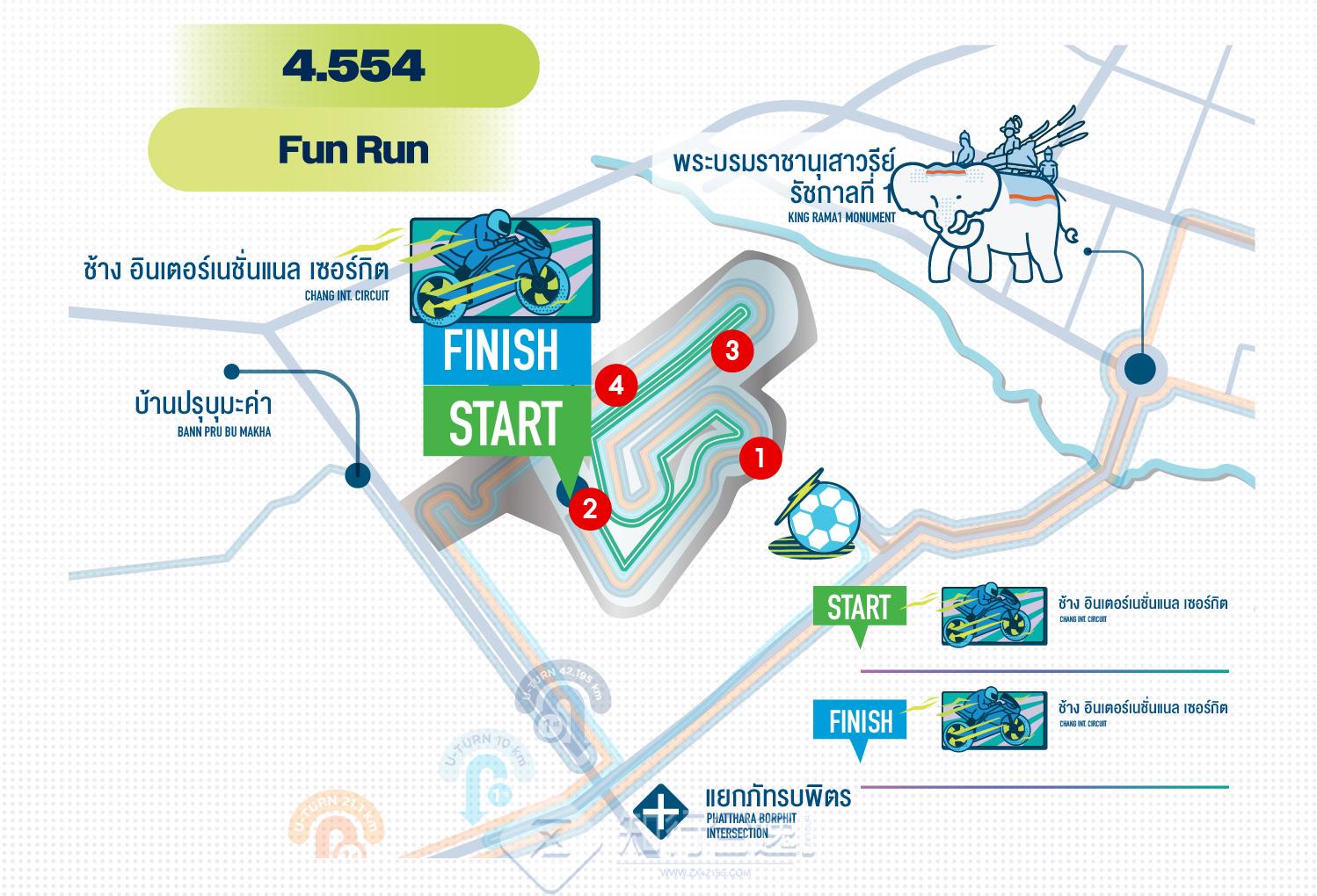 在武里南马拉松上,这里是起点!赛道长4.554公里,将全部开放给你跑!这将是您体验F1赛道的绝佳机会!你可能会好奇这场马拉松为什么能跑在F1赛道上,因为武里南马拉松和武里南F1赛道是同一个老板,当地第一豪绅!为了促进泰国体育产业的发展,是不计回报的投入!