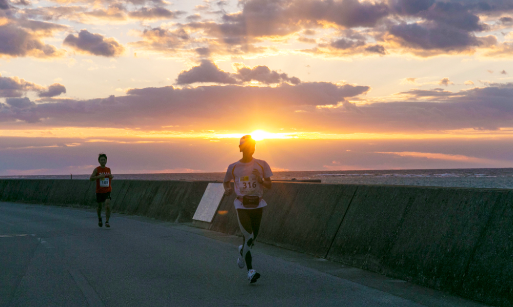 100公里的路程从与那古浜公园(冲绳县岛原郡与那原町)出发,沿着海岸线经过奥武岛的沿海路线,到糸满市政府折回。