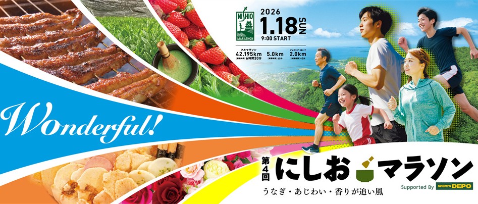 以下奖品任选其一:西尾市特产草莓;西尾抹茶甜点;三河一色虾片;优质风味海苔;或西尾马拉松商品展500日元优惠券(*草莓、风味海苔和西尾马拉松商品展优惠券各1000个)