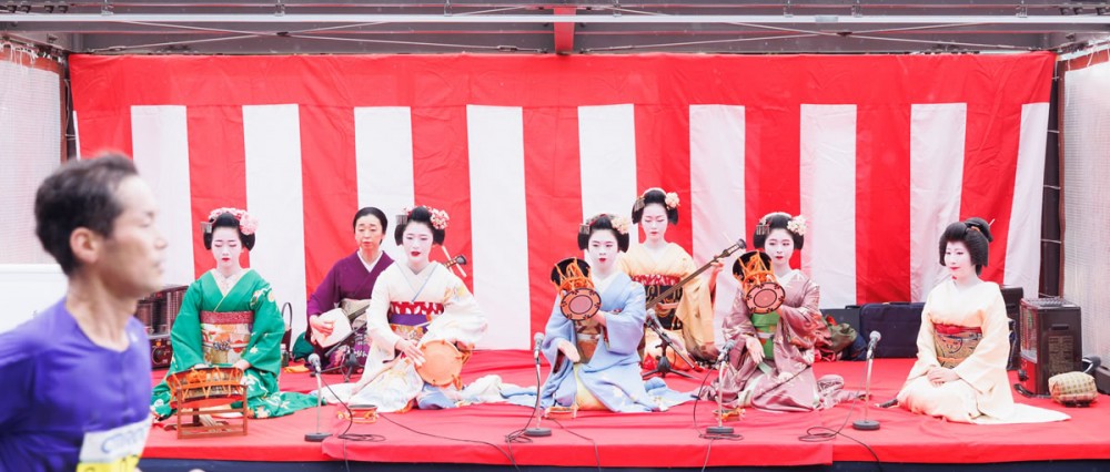 京都马拉松赛道赫然变成了京都传统文化展示的平台,42.195公里,变着花样的秀。路线充满着京都的独特魅力,鼓乐队鼓舞人心,独特的艺伎表演,各色民间助威表演的乐队,和大学生啦啦队等!