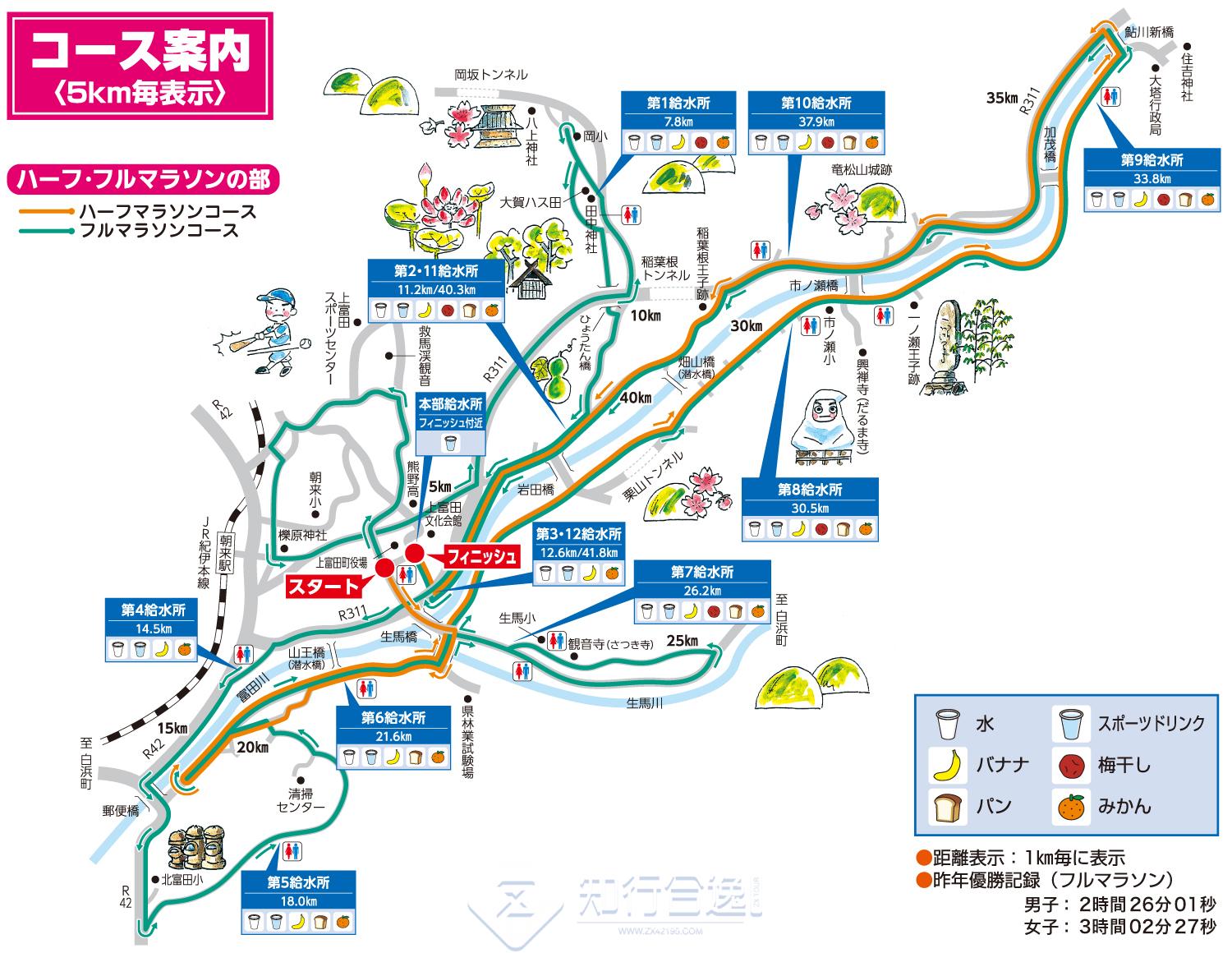 补给站将为跑者提供面包、香蕉、腌梅子等食物。跑完后,前往“美食角”。志愿者们热情的服务定会让您身心舒畅。现场还将设有当地特产展位。跑完后,别忘了品尝纪州茶粥“Okaisan”。