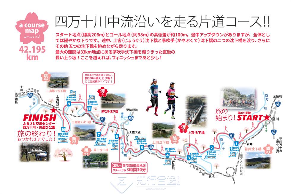 四万十川樱马拉松路线洼川小学(开始)→故乡交流中心(终点)