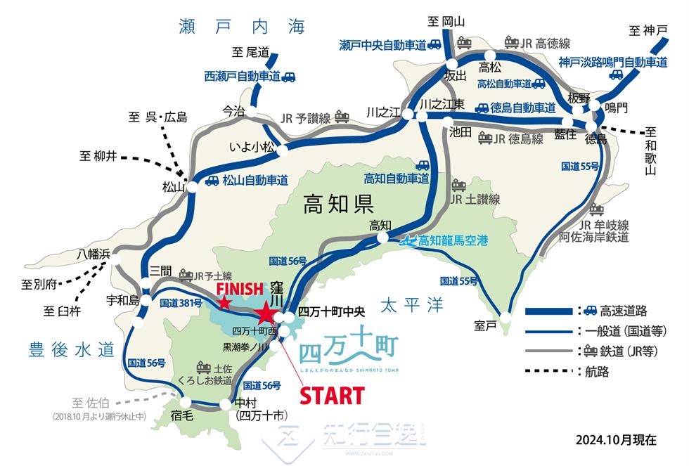 ● 从京都、大阪和神户出发,均可乘坐经洼川站前往宿毛的夜间巴士。