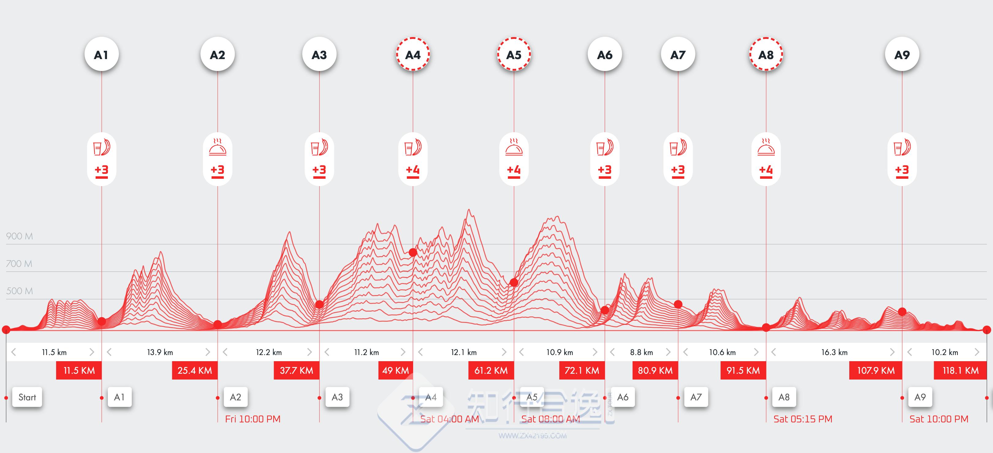 该组别被称之为「Betong 100M」。虽然是百英里组别,但全长仅为111公里,累计爬升5720米,5月2日下午4点起跑,32小时关门。完赛可以获得4块宝石。