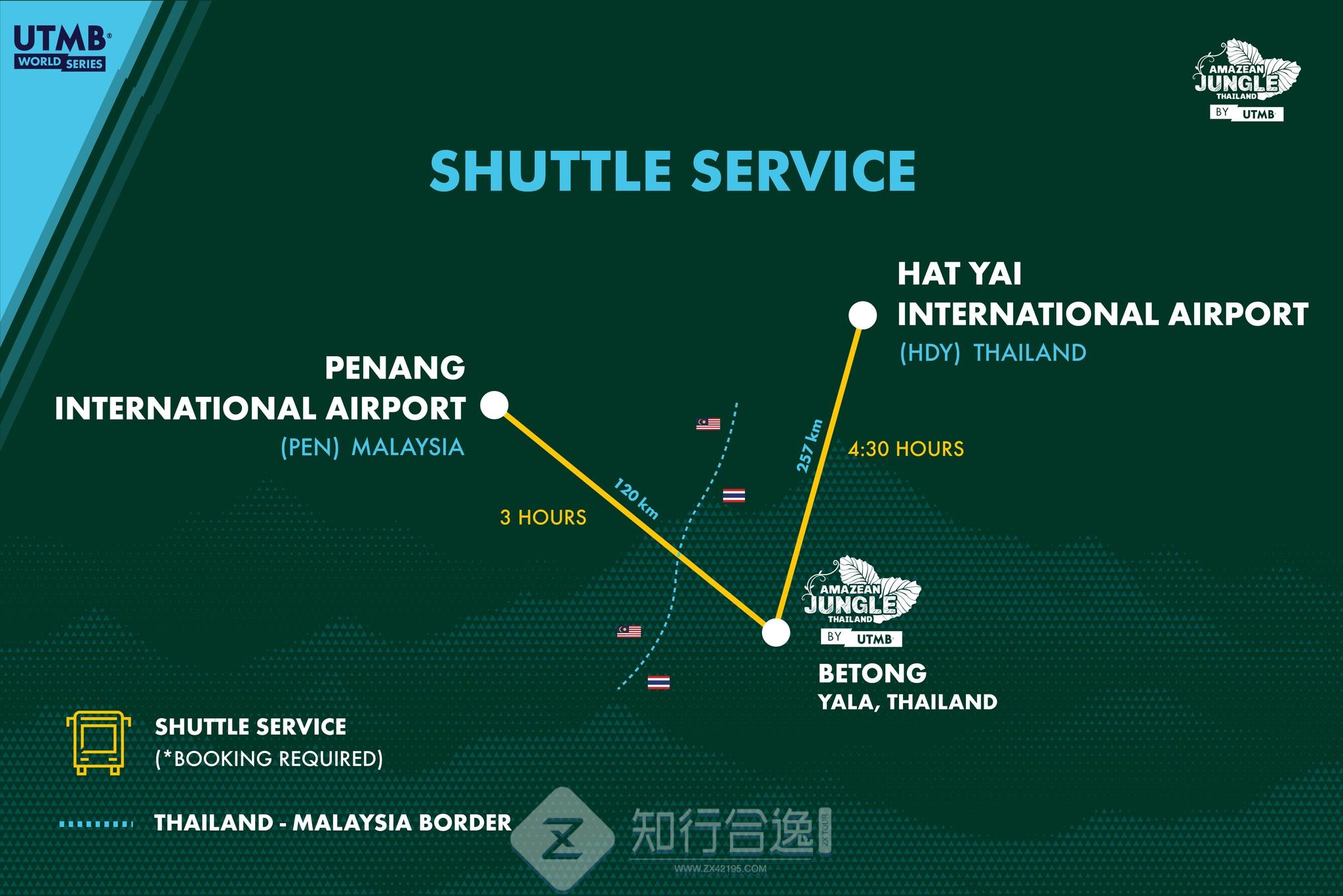组委会会安排从合艾机场到比赛地勿洞的摆渡班车(需要额外付费),具体费用以及班车时间表,我们也将第一时间将相关消息通知报名跑友,车程大概在4-5个小时。