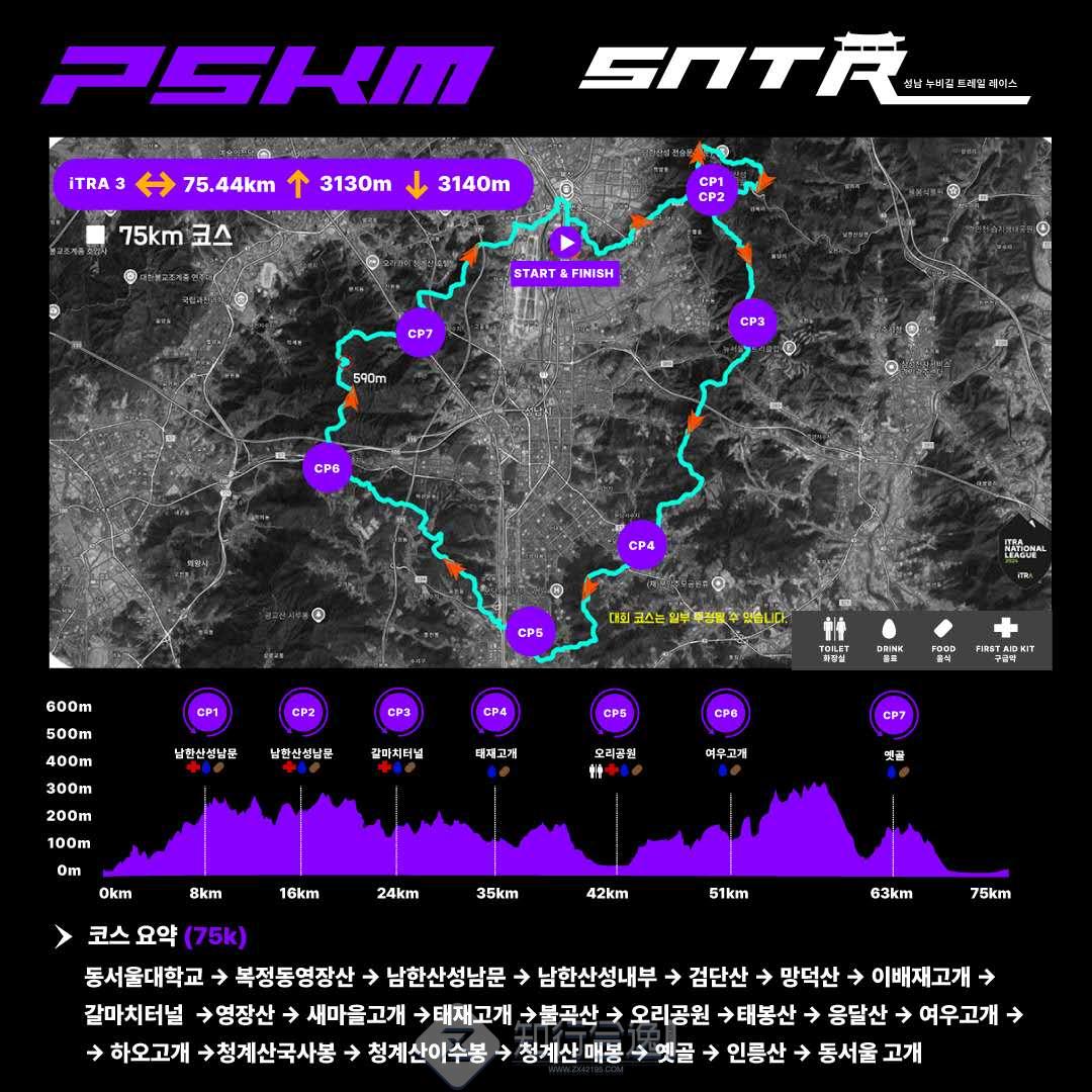 75 公里组别:累积距离 75 公里,累积爬升/下降 3130 米。关门时间 17 个小时。完赛可以获得 3 个 ITRA 积分 。