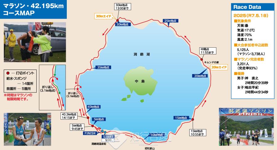 起点位于太平堂前交差点(町道温泉大通り線),在月浦地区(国道230号)折回,最终抵达终点わかさいも本舗裏(洞爺湖畔遊歩道),全程都绕着洞爷湖奔跑。