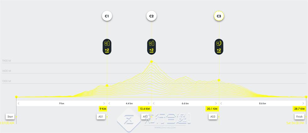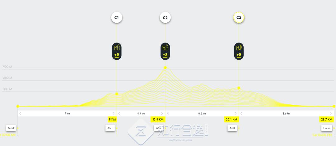 累计距离28.4公里,累计爬升1,302 米,关门时间9小时。完赛可以获得 1块宝石。