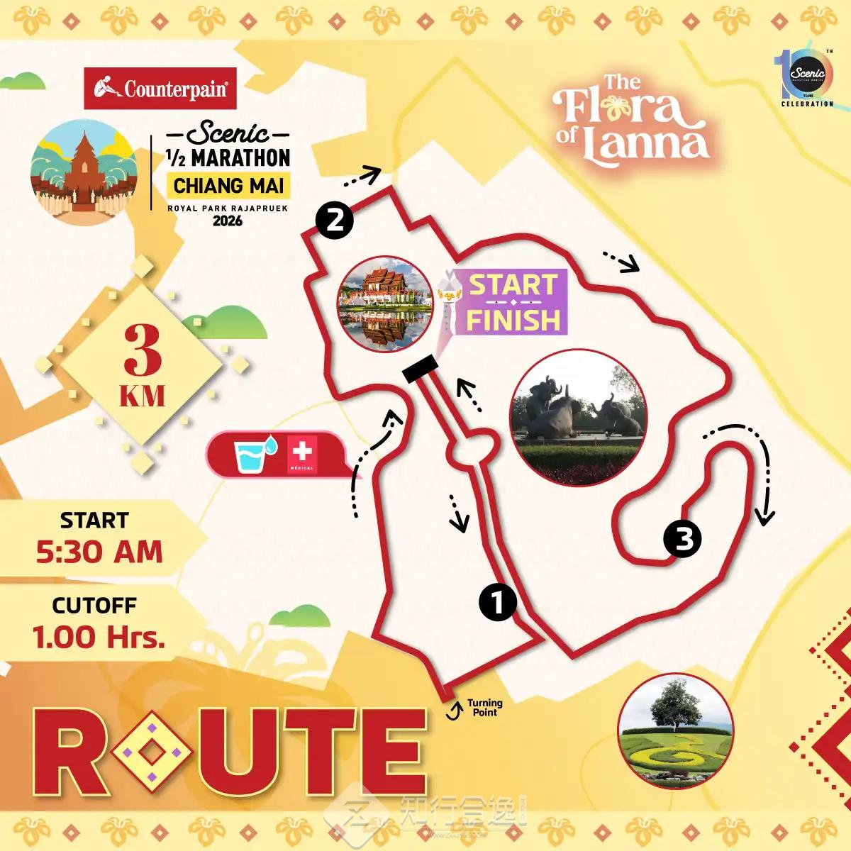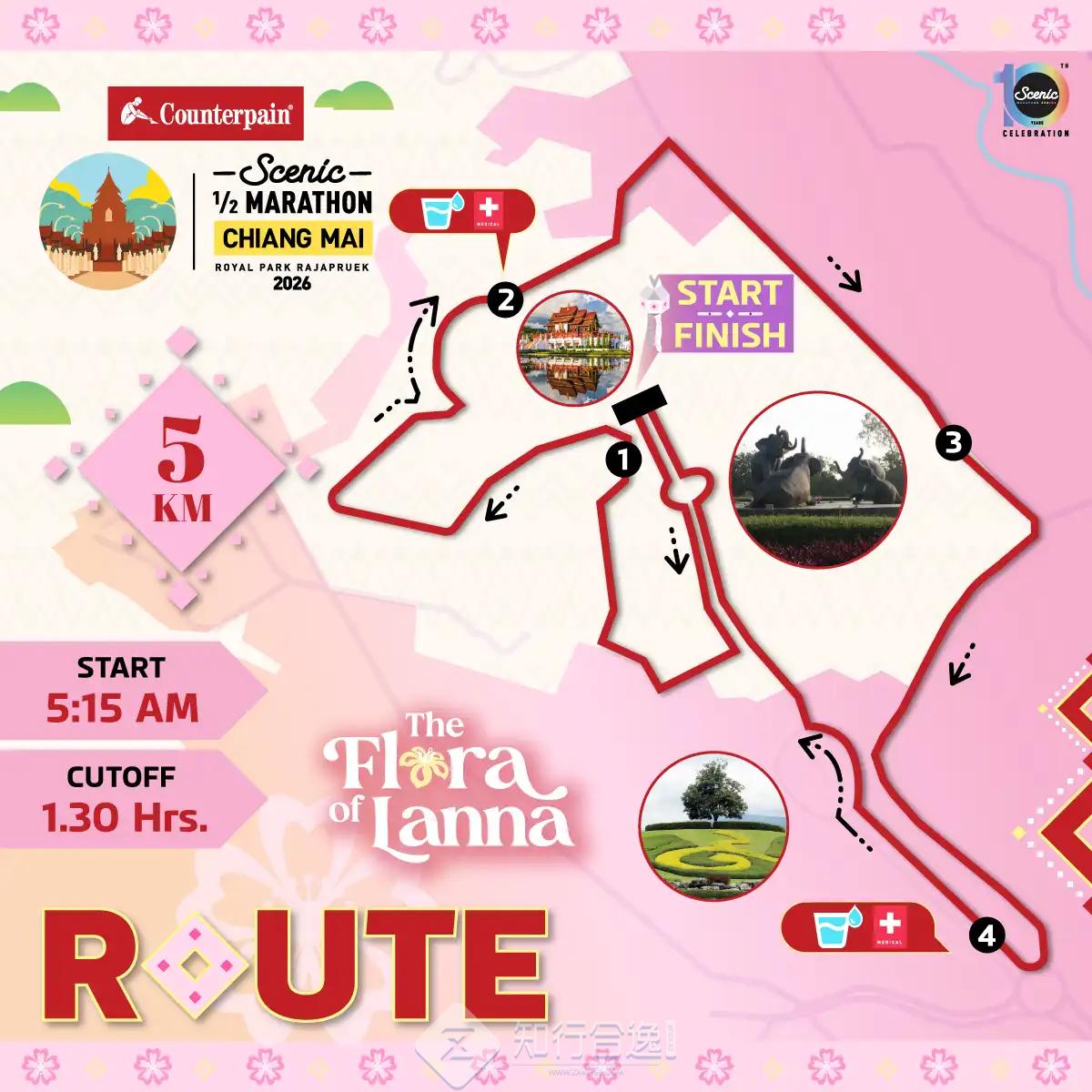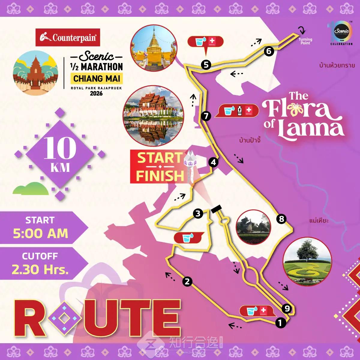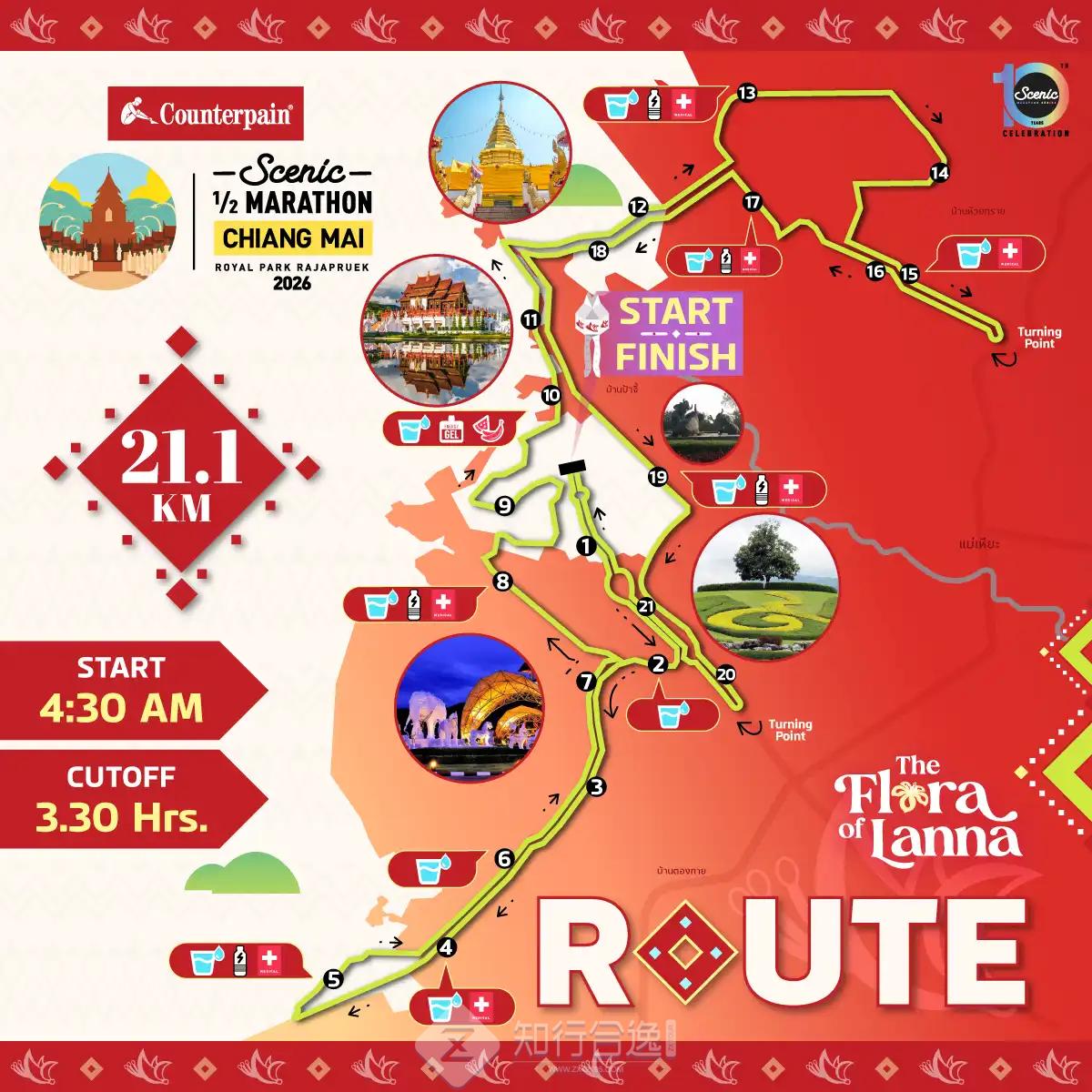 清迈风景半程马拉松通过一条环绕于秀丽山麓景观与皇家花园宏伟建筑之间的赛道,生动展现了清迈独特的自然之美以及兰纳艺术与文化的魅力。