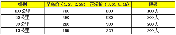(领取参赛物品时,需另缴100元计时芯片押金;完赛后无损坏,现场退还押金,100公里和50公里组选手还需缴纳500元卫星跟踪器押金,完赛后无损坏,现场退还押金)
