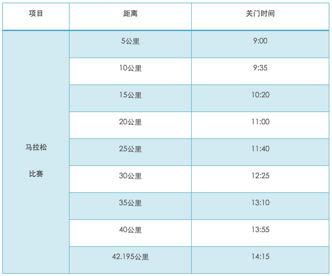 为了保证参赛选手比赛安全,限时对社会交通进行滚动封闭。比赛路线各段专设了赛时关门时间,到了关门时间,相应公里点的计时毯停止工作,相应路段将恢复社会交通。在规定关门时间内,未跑完对应距离的参赛选手须立即停止比赛,退出赛道,以免发生危险。退出比赛的选手可到沿途收容站搭乘收容车或自行选乘公共交通抵达终点。