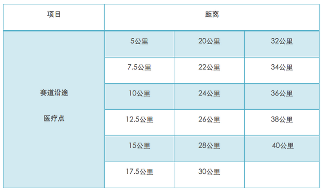 1、组委会在起点、沿途(沿马拉松路线自5公里开始每2.5公里设置一个医疗站;自20公里开始每2公里设置一个医疗站)及终点设立固定医疗点。