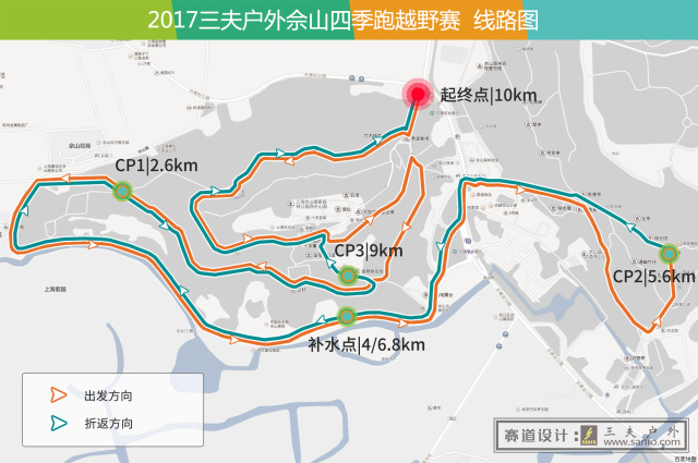 路线:(起点)西佘山北门—竹木栈道—西佘山行车道—观景平台—秀道者塔—云轩—西佘山西门—环山路—外青松公路—东佘山西门—佛香泉—白石山亭—南高峰—乾隆亭—东佘山西门—外青松公路—环山路—西佘山西门—云轩—观景平台—西佘山行车道—竹木栈道—西佘山北门(终点)